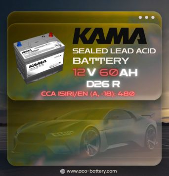 باتری خودرو ۶۰ آمپر پایه بلند کاما | قدرت، دوام و عملکرد مطمئن
